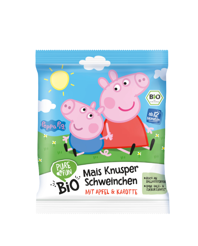 Pure & Fun Peppa Pig Τραγανό Σνακ Καλαμποκιού με Μήλο & Καρότο 30gr (12+ μηνών)