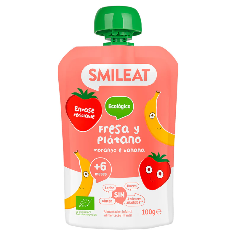 Smileat Πουρές Φρούτων‑Λαχανικών με Γεύση Φράουλα‑Μπανάνα 100 g (+6 μηνών)