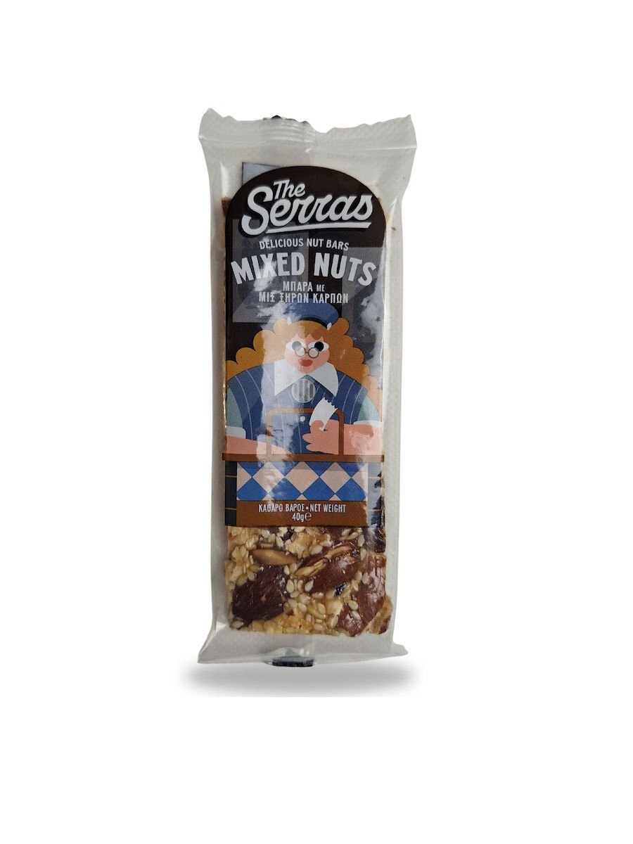 Μπάρα με μείγμα εκλεκτών ξηρών καρπών από τη σειρά The Serras της ERGON. Ένα πρακτικό και γευστικό snack ιδανικό για κατανάλωση οποιαδήποτε στιγμή της ημέρας, προσφέροντας ενέργεια και απόλαυση σε μια μικρή, εύχρηστη συσκευασία.